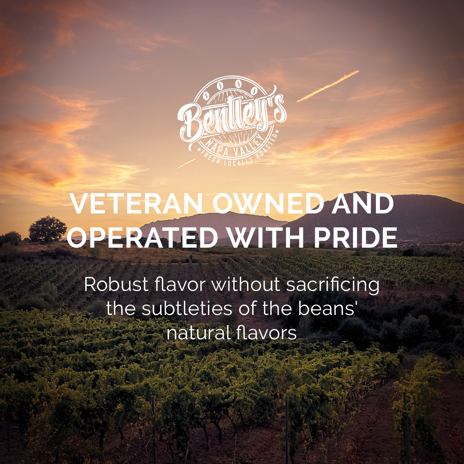 Bentley’s Napa Valley is a veteran-owned coffee roaster tucked away in the heart of wine country. We’re all about small-batch roasting and strong values—crafting coffee with purpose. Thanks to your support, we’re able to give back to Veteran and First Responder organizations.